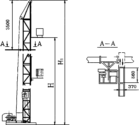 Подъемник (рис.1) предназначен для подъема строительных материалов, горизонтальной подачи их внутрь проходов зданий.