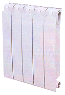 У радиатора серии RS Bimetal оригинальная конструкция, аналогов которой нет. Его секции состоят из двух стальных каналов для прохода теплоносителя (два канала нужны для лучшей теплоотдачи), залитых под давлением высококачественным алюминиевым сплавом. Для изготовления трубок использована сталь с повышенной коррозийной устойчивостью. Они изогнуты в виде скоб по отношению к вертикальной оси прибора, чтобы компенсировать разное температурное расширение двух металлов. Секции стянуты между собой дюймовыми стальными ниппелями. На торцах предусмотрены специальные пазы для торообразных (О-ring) прокладок, обеспечивающих высокую герметичность соединения. В отличие от применяемых в других системах паранитовых прокладок изделия типа О-ring из термостойкой резины можно использовать неоднократно.