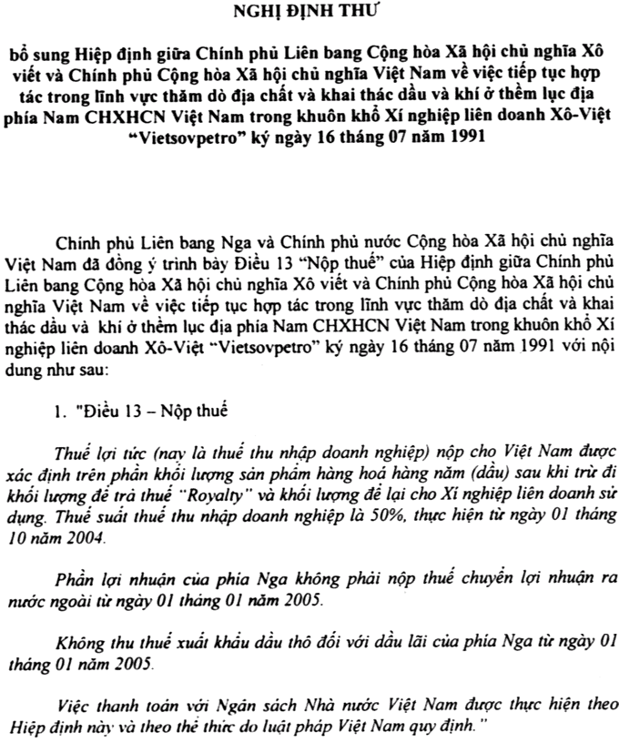 Протокол к Соглашению между Правительством Союза Советских Социалистических Республик и Правительством Социалистической Республики Вьетнам о дальнейшем сотрудничестве в области геологической разведки и добычи нефти и газа на ... (рус., вьетн.)