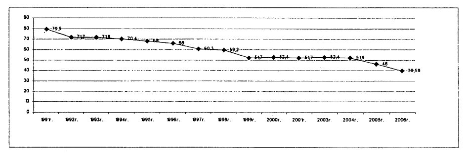 Рис.1. Динамика заболеваемости тениозом на территории Российской Федерации за период с 1991 по 2006 годы