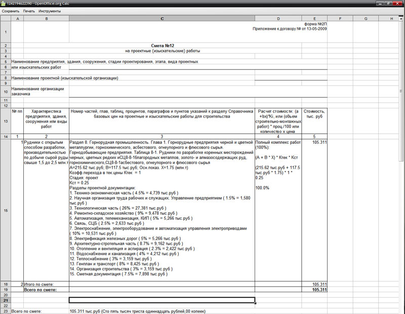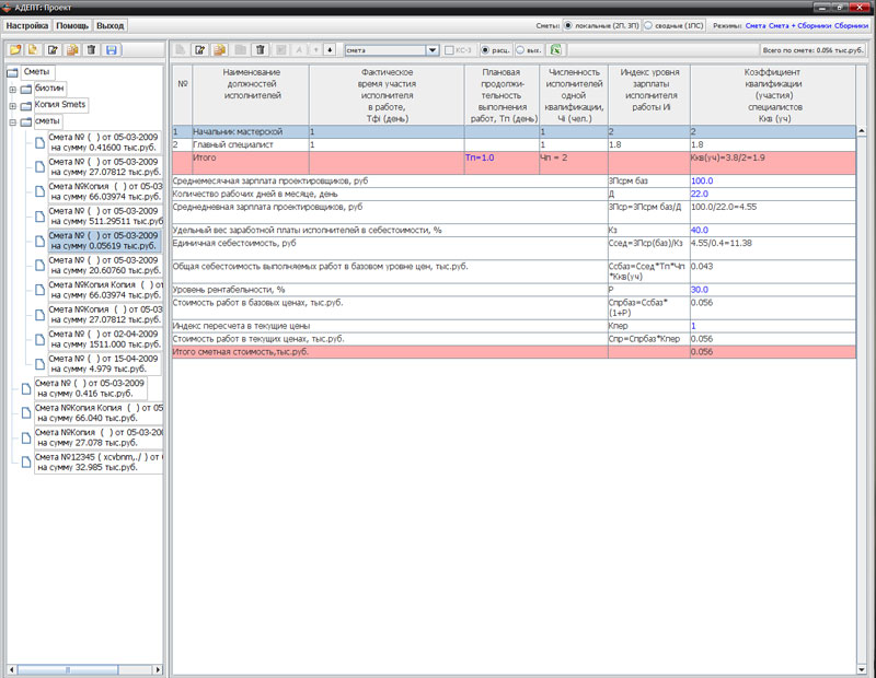 - Для определения базовой цены в программе реализованы все существующие методы расчета смет на проектные работы: