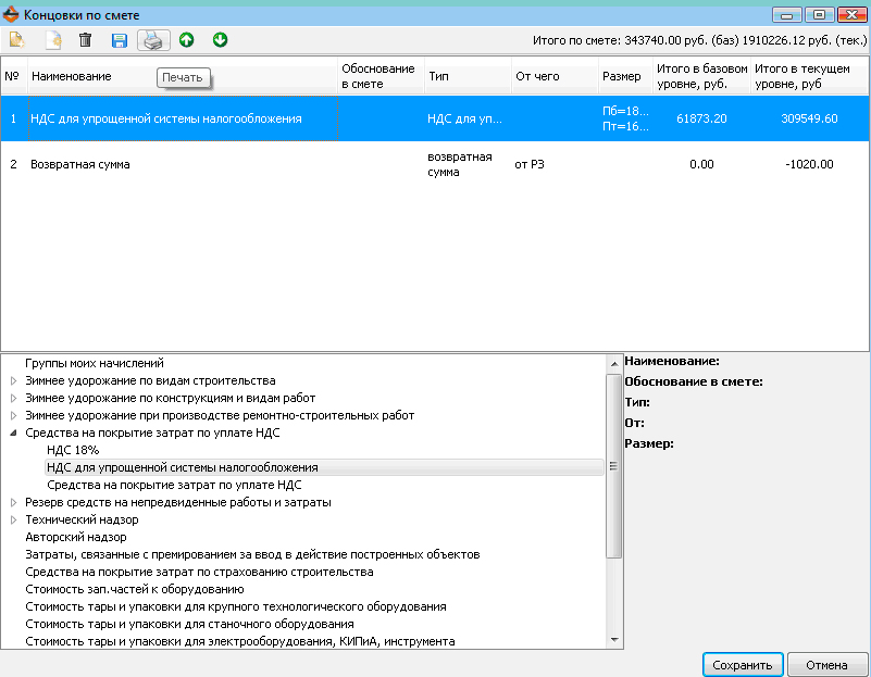 Удобное начисление накладных и сметной прибыли и коэффициентов на них.