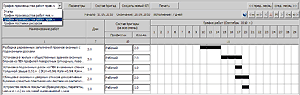 Создание календарного плана производства работ (в составе ППР форма 1) по расценкам, по разделам, по сметам и объектам. Определение длительности работ по фирменному справочнику «Состав бригад» или по среднему количеству рабочих в бригаде и числу смен. Возможность двигать работы и задавать перерыв в них.