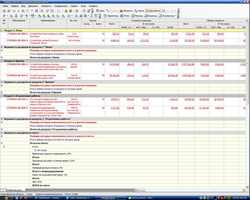 - Нормативная база программы полностью содержит всю информацию из СНиП - техническую часть сборников, состав работ по расценкам, нормативы расхода материальных ресурсов и т.д.