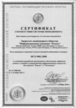 - сертификат соответствия национальному стандарту ГОСТ ISO 9001-2011,