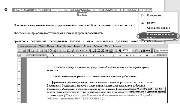 Теперь можно устанавливать ссылки на документы ИС «Техэксперт» прямо в создаваемых вами документах. Вы сможете ставить пометки, на которые ссылаетесь, переходить в необходимые разделы с помощью одного клика мышки. Это не только сократит время работы, но и сделает сам процесс более приятным и простым. Как это сделать, можно посмотреть в примерах, указанных ниже или проконсультироваться у персонального менеджера.