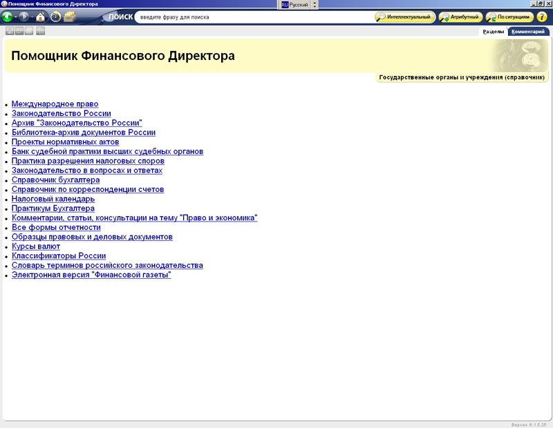 «Помощник Финансового Директора» - информационный продукт, предназначенный для обеспечения всесторонней поддержки в области бухгалтерского, и бюджетного учета, налогообложения, международного права и судебной практики.