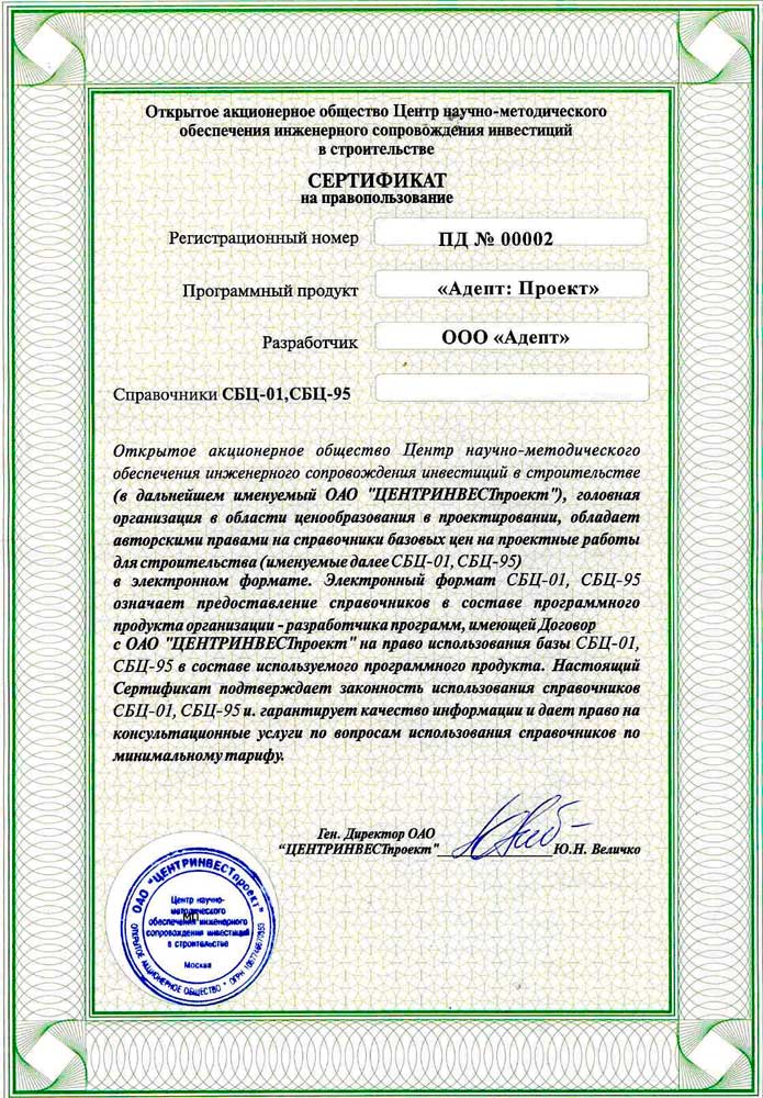 Программа сертифицирована Центром научно-методического обеспечения инженерного сопровождения инвестиций в строительстве (ОАО «ЦЕНТРИНВЕСТпроект»).