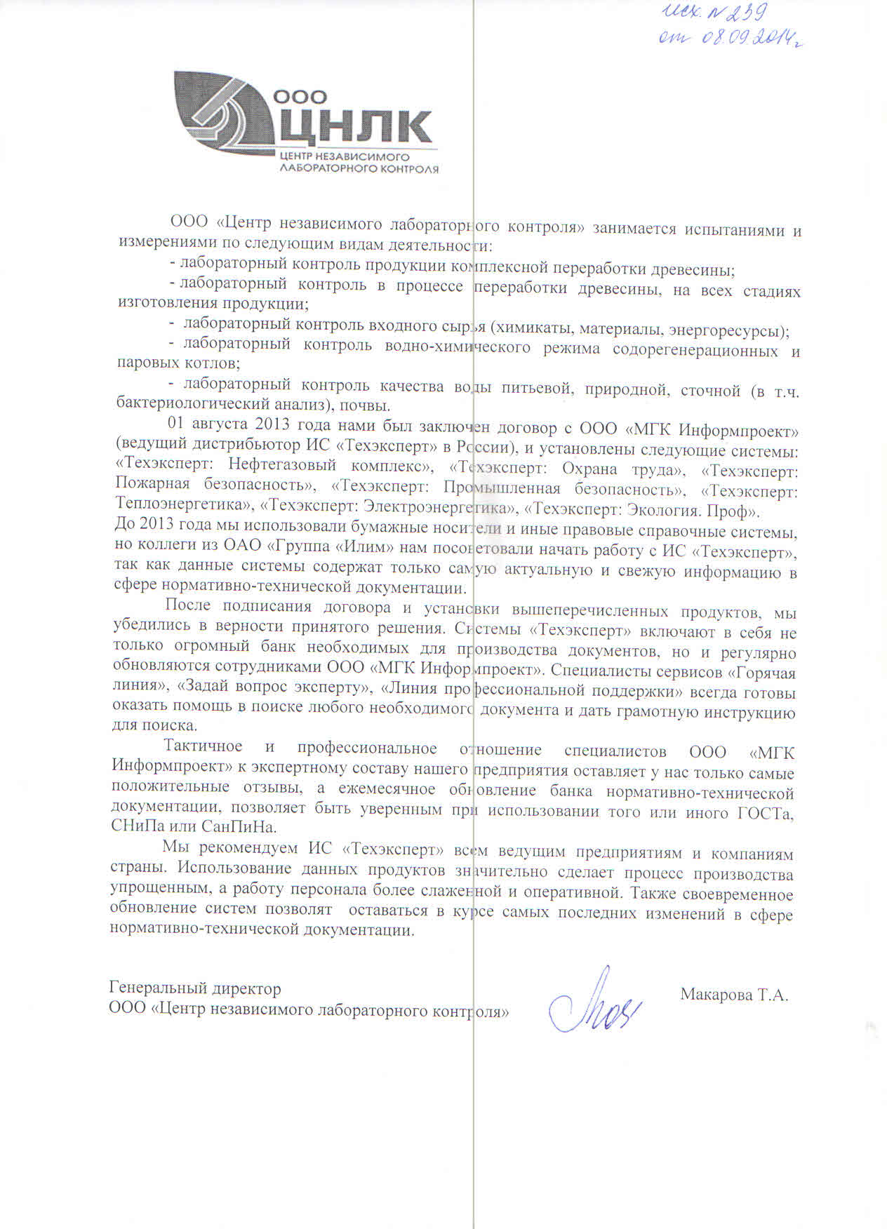 ООО "Техэнергострой"                                           ООО "Центр независимого лабораторного контроля"