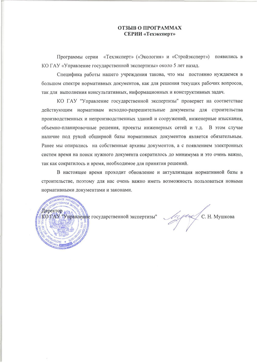 КО ГАУ «Управление государственной экспертизы», г. Киров, директор С.Н. Мушкова: