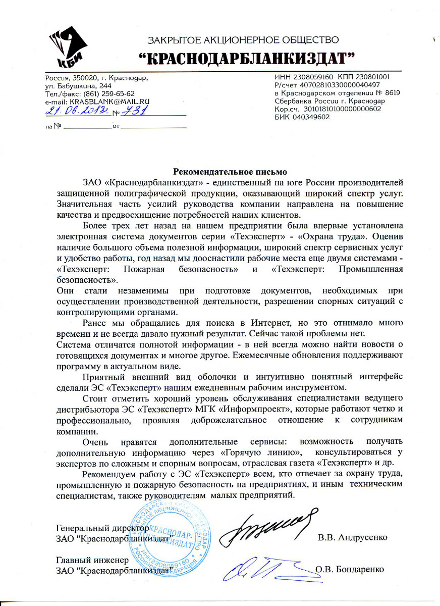 ЗАО «Краснодарбланкиздат», генеральный директор В.В. Андрусенко
