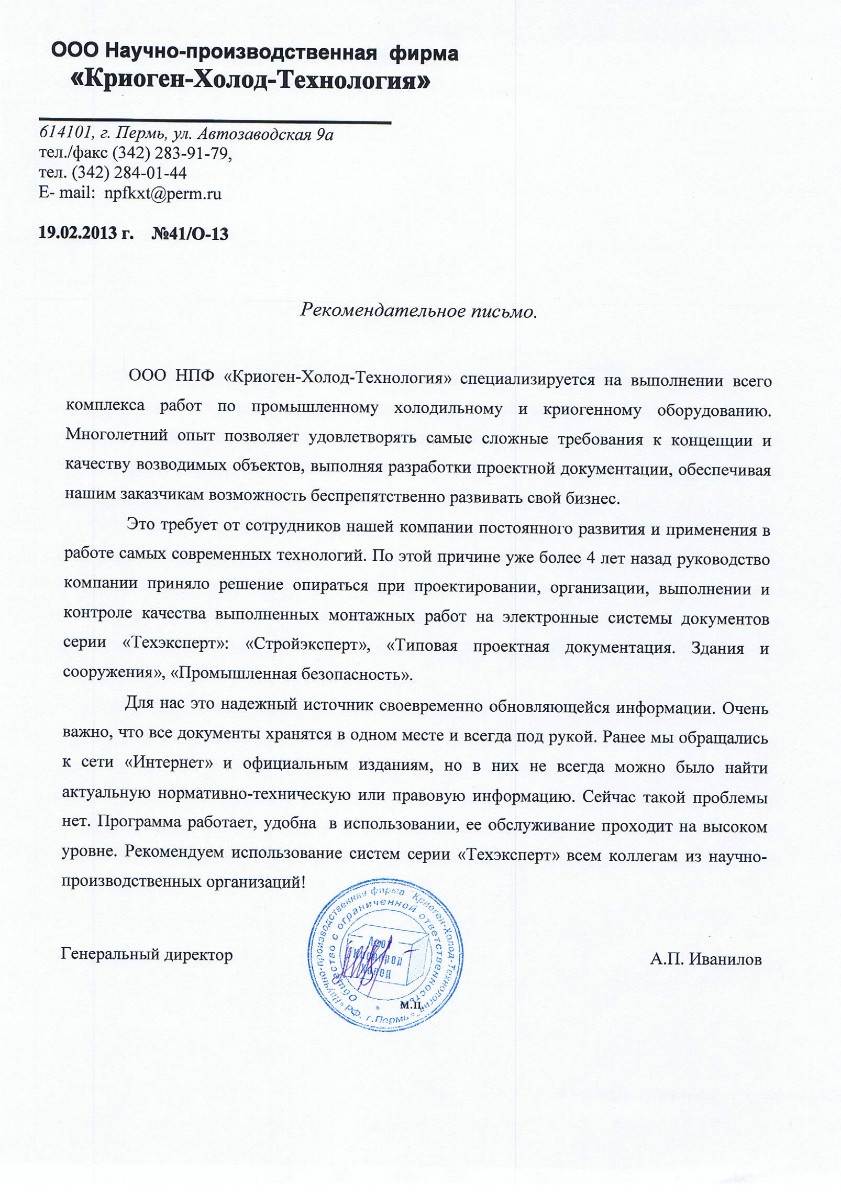 «Благодаря продуктам «Техэксперт» у меня есть ответ на любой вопрос! Система помогает и проверки проходить и проектировать объекты, и успешно сотрудничать с надзорными органами. Спасибо Вам большое!»