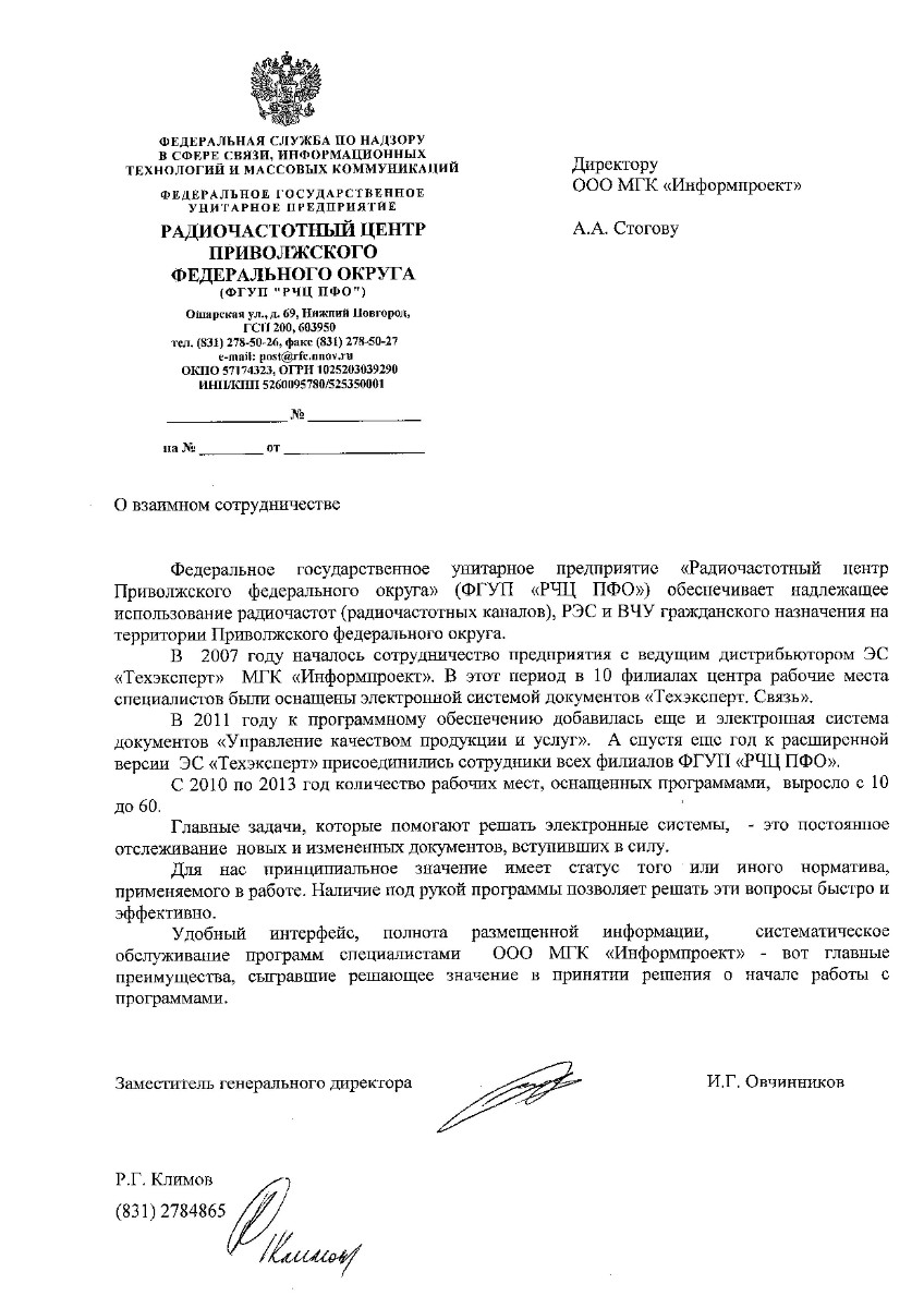 В настоящее время мы в значительной степени решаем вопрос обеспечения информационными данными благодаря системе документов «Техэксперт: Связь» и бесплатного дополнительного сервиса ООО МГК «Информпроект» (официального дистрибьютора ИС «Техэксперт») «Горячая линия».