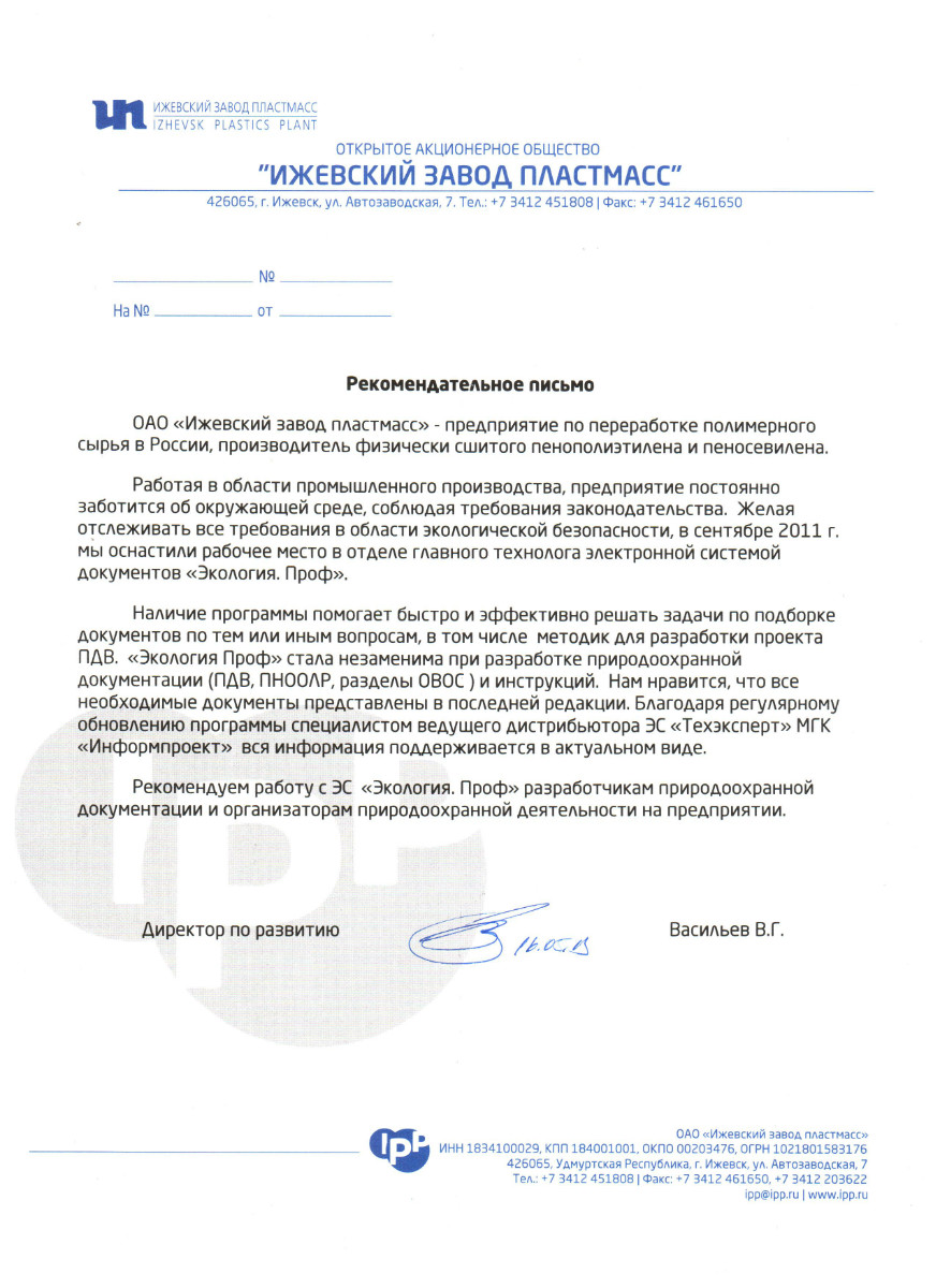 ОАО «Ижевский завод пластмасс», директор по развитию В.Г. Васильев