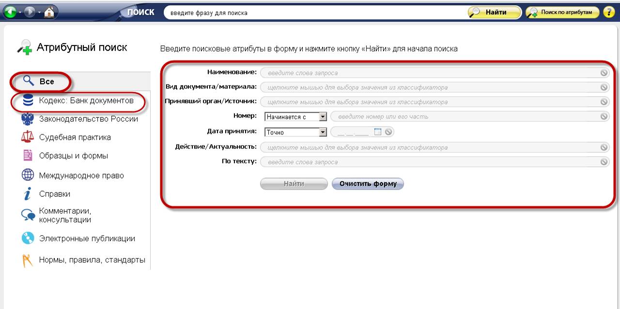 - Поиск по собственной базе и по базам подключенных систем «Кодекс» и «Техэксперт» в едином информационном пространстве;